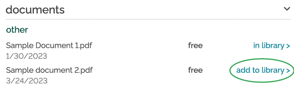 Directly download free documents from the Documents section of a property page by selecting Add to Library.