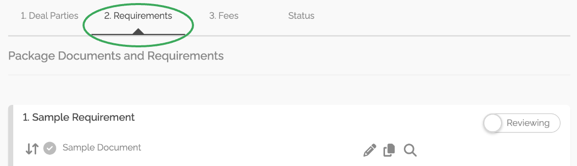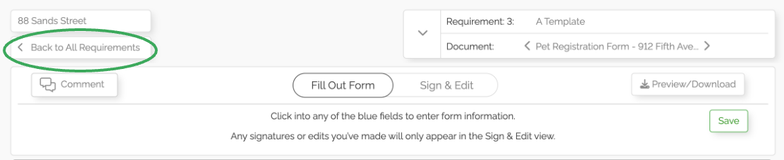Once you have accessed a document for editing/completion, you will need to return to the Requirements tab at some point.